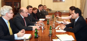 Потпредседник Владе Републике Србије за европске интеграције Божидар Ђелић упознао је данас парламентарног државног секретара Савезног министарства унутрашњих послова Немачке Петера Алтмајера са свим активностима Владе усмереним на интеграцију Србије у ЕУ.