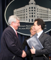 Мартин Дахинден и Божидар Ђелић након потписивања заједничке изјаве