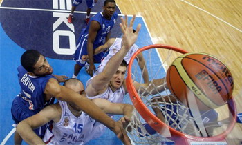 Кошаркашка репрезентација Србије изгубила је синоћ од селекције Француске са 97:96, после продужетка (24:25, 19:16, 19:23, 18:16 - 17:16), у петом, последњем колу Б групе првенства Европе у Литванији.