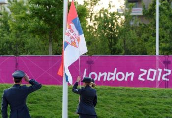 У Олимпијском селу у Лондону синоћ је свечано подигнута српска застава, уз интонирање националне химне "Боже правде".