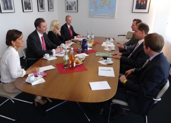 Први потпредседник Владе задужен за одбрану, безбедност и борбу против корупције и криминала и министар одбране Александар Вучић састао се на почетку званичне посете Немачкој са замеником генералног секретара „Конрад Аденауер Фондације“ Герхардом Валерсом.