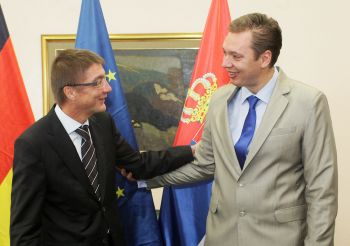 Вучић је том приликом истакао да је интерес Србије да што снажније сарађује са Немачком и потврдио спремност наше земље да настави дијалог са Приштином и испуни обавезе које је преузела претходна Влада.