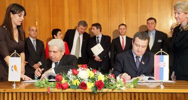 Председник Владе Републике Србије и министар унутрашњих послова Ивица Дачић и председник Републике Кипар Димитрис Христофијас потписали су данас Меморандум о разумевању између влада двеју држава о успостављању унапређеног партнерства.