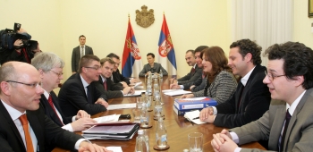 Делегацију Бундестага чинили су заменик председавајућег ЦДУ/ЦСУ фракције у немачком парламенту Андреас Шокенхоф, посланик Петер Бејер, посланик Родерих Кизеветер, посланик и известилац за Србију у Комитету за европске послове Јохан Вадепул и спољнополитички саветник фракције ЦДУ/ЦСУ у немачком парламенту Ханс-Јоахим Фаленски, наводи се у саопштењу Кабинета потпредседника Владе.
