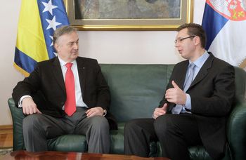Први потпредседник Владе Републике Србије задужен за одбрану, безбедност и борбу против корупције и криминала и министар одбране Александар Вучић разговарао је данас са министром спољних послова и замеником председавајућег Савету министара Босне и Херцеговине Златком Лагумџијом о сарадњи и евроинтеграцијама двеју земаља.