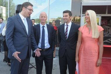 Слева: Александар Вучић, директор "Рингије Медија" Марк Валдер, извршни директор "Рингије Аксел Спрингер Медија АГ" Марк Декан и генерални директор "Рингије Аксел Спрингер Србија" Јелена Дракулић Петровић