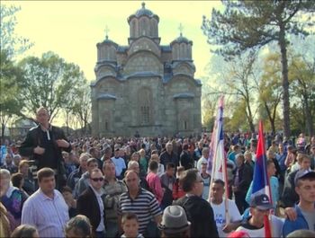 Дачић је, обраћајући се грађанима окупљеним у порти манастира Грачаница, истакао да привремене институције Приштине немају потребе да негодују због мешања Србије у изборе на Космету, јер Срби који тамо живе већ знају да је јединствена борба за националне интересе једини гарант њиховог опстанка на Космету.