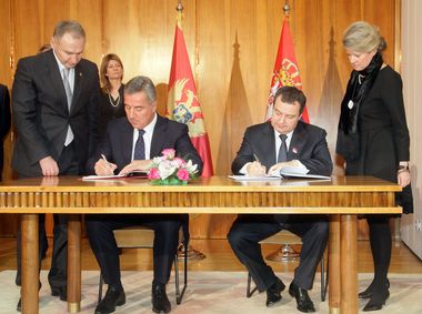 Премијери Србије и Црне Горе потписали су данас Споразум о сарадњи Владе Републике Србије и Владе Републике Црне Горе у контексту приступања Европској унији.