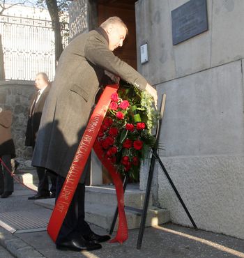 Ђукановић је након састанака у Палати Србија положио венац на спомен-плочу премијера Србије Зорана Ђинђића у дворишту Владе Србије.