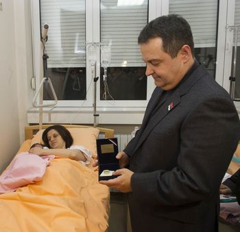 Председник Владе Републике Србије Ивица Дачић уручио је рано јутрос златник прворођеној беби, девојчици, коју је у Гинеколошко-акушерској клиници (ГАК) Народни фронт родила Гордана Зечевић.