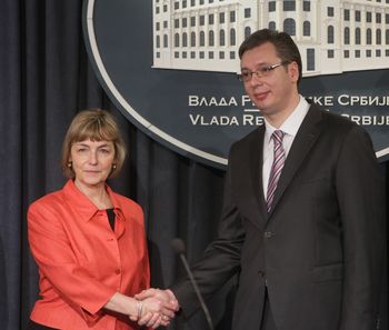 Вучић је саопштио да је данас испунио обећање које је дао током последњег боравка у Загребу и уручио Пусић 38.439 аерофото снимака терена у Хрватској, које је својевремено начинила војска, а који су данас важни за процес легализације објеката.