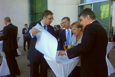 Премијер је пренео да је немачком канцелару показао пројекте на карти, уз оцену да јој је био интересантан пројекат пруге према Црној Гори, али и да је разумела важност пројекта пруге Београд–Сарајево, која би ишла преко Зворника, Тузле и Добоја.