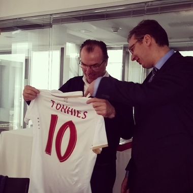 У поподневним сатима премијер Вучић присуствоваће фудбалској утакмици између Борусије из Дортмунда и Шалкеа 04 из Гелзенкирхена, фудбалског клуба чији је председник Клеменс Тенис.