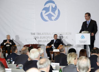 Вучић је на скупу у хотелу „Краун плаза“ истакао да се наша земља труди да пронађе своју економску и политичку позицију и да постане пуноправни члан ЕУ.