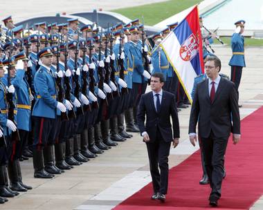 Након свечаног дочека започео је одвојени састанак премијера Вучића и Валса, на чијем је почетку, у делу отвореном за медије, председник Владе Србије поручио да пријатељски односи Србије и Француске никада нису довођени у питање.