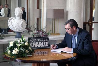 Председник Владе Републике Србије Александар Вучић уписао се данас у књигу жалости у Амбасади Француске у Београду и одао почаст жртвама напада на сатирични лист "Шарли ебдо", уз поруку да ће се Србија и Француска против зла тероризма борити заједно, баш као што су кроз своју историју то много пута чиниле.
