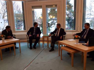 Председник Владе Републике Србије Александар Вучић наставио је данас једнодневну посету Финској сусретом са председником Републике Финске Саулијем Нинистом у његовој резиденцији Мантиниеми у Хелсинкију.