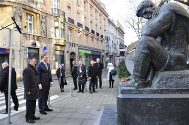 Вучић је по доласку положио цвеће на споменик Николи Тесли у центру хрватске престонице, где га је дочекао председник Српског националног већа Милорад Пуповац.