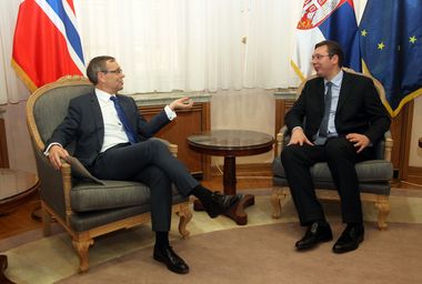 Вучић је на састанку, током којег је било речи о могућностима за повећање обима економске сарадње двеју земаља, посебно у области енергетике, упутио позив норвешким компанијама да повећају присуство на српском тржишту.