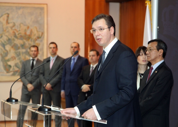 Вучић је на церемонији отварања, којој је присуствовао и први потпредседник Владе и министар спољних послова Ивица Дачић, пренео захвалност Јапану на подршци и помоћи Србији након прошлогодишњих мајских поплава.