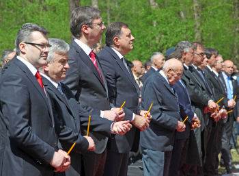С тога можемо само две ствари овде да урадимо. Прва је погнемо главу, да је спустимо у положај оних који је нису спуштали ни пред клање, да одамо почаст и покажемо да се сами кајемо пред сваким злочином који је починила наша врста која се зове човек, понекад без икаквог разлога, а после да подигнемо главу високо и кажемо да смо опстали и да живимо, нагласио је Вучић.