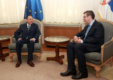Председник политичке групе социјалдемократа, друге по снази у Европском парламенту у коме представља Италију, пренео је Вучићу поздраве и подршку премијера Италије Матеа Ренција, при чему је нагласио да се и у његовој земљи, и у ЕП, са великим интересовањем прате одважне реформе које спроводи Влада Србије.