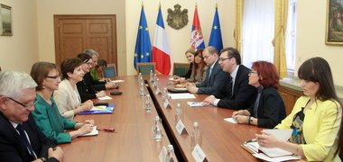 Вучић је пренео захвалност представницима Владе Француске на константној подршци коју пружају Србији у процесу евроинтеграција, и поновио да је стратешки циљ Србије чланство у ЕУ.