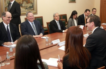 Председник Владе Републике Србије Александар Вучић разговарао је данас са министром спољних послова Грчке Никосом Коцијасом о билатералним односима, и истакао да Србија сматра Грчку искреним пријатељем и да са великом пажњом прати дешавања у тој земљи на економском плану.