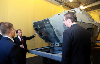 Он је нагласио да је то једно од најбољих возила те врсте, и истакао да Србија полако улази и у те сложене борбене системе, да ће унапредити све ковачнице, капислане и све фабрике муниције у наредном периоду.