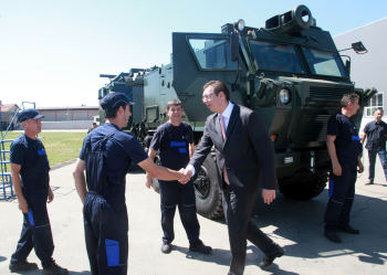 Он је оценио да се наменска индустија Србије полако, али значајно подиже, и да је Србија у том погледу далеко престигла земље региона, и то не куповином туђе технологије, већ својом памећу и производњом.