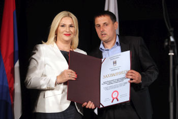Признања за изузетан допринос развоју Бајине Баште уручена су и шефу Кабинета потпредседника Владе Марији Блечић и в.д. директора ЈП “Путеви Србије” Зорану Дробњаку.