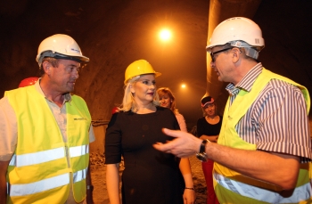 Михајловић и генерални директор "Енергопројекта" Владимир Миловановић обишли су током ноћи и градилиште тунела Бранчић, где се даноноћно пробијају две тунелске цеви које ће бити дуге по 940 метара.