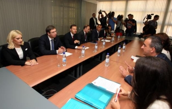 Вучић је данас одржао састанак и са руководством Аеродрома, којем су присуствовали и потпредседник Владе и министар грађевинарства, саобраћаја и инфраструктуре Зорана Михајловић, генерални директор "Ер Србија" Дане Кондић и градоначелник Београда Синиша Мали.
