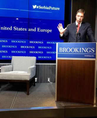 Вучић је том приликом поручио да Влада Србије жели да поново позиционира Србију на другачији начин – да буде мирољубива и демократска држава, и додао да би наша земља била веома лојална чланица ЕУ.