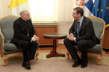 Вучић је истакао да су током шестогодишњег мандата овог представника Свете столице односи Србије и Ватикана унапређени, чему сведочи и боље разумевање између Римокатоличке и Српске православне цркве.