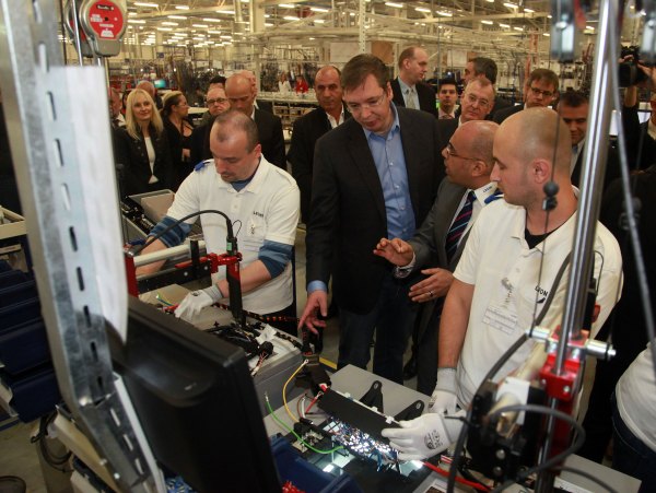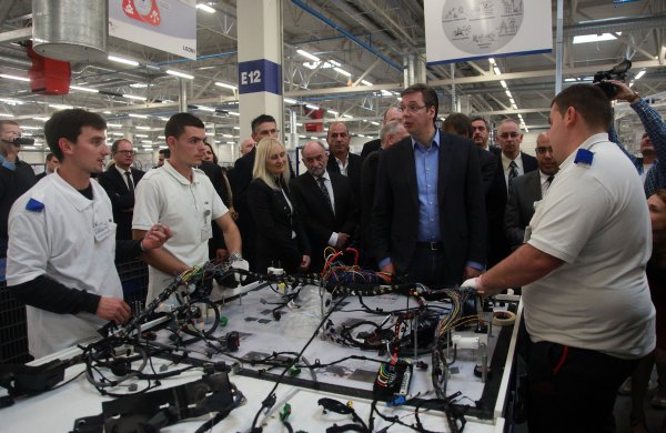 Вучић је на отварању фабрике "Леони", која се бави производњом аутомобилских каблова за возила "јагуар" и "ландровер", истакао да је почетак рада трећег погона те компаније у Србији доказ да се марљивост исплати.
