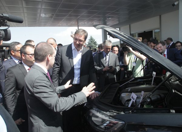 Вучић је, на уласку у фабрику, обишао аутомобиле опремљене производима те компаније.