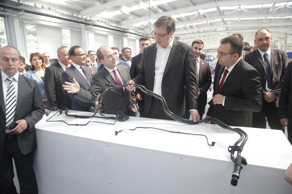 Вучић је, у друштву амбасадора Турске у Србији Мехмета Кемала Бозаја, пустио у погон нову фабрику те компаније која се бави производњом компоненти за делове аутомобила.