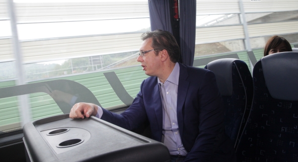 Вучић и Михајловић су се провозали аутобусом, у друштву представника медија, делом деонице Грабовница–Грделица.