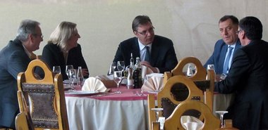 Разговору Вучића и Додика присуствовали су и премијер Републике Српске Жељка Цвијановић, министар привреде у Влади Републике Србије Жељко Сертић и амбасадор Србије у БиХ Станимир Вукићевић.