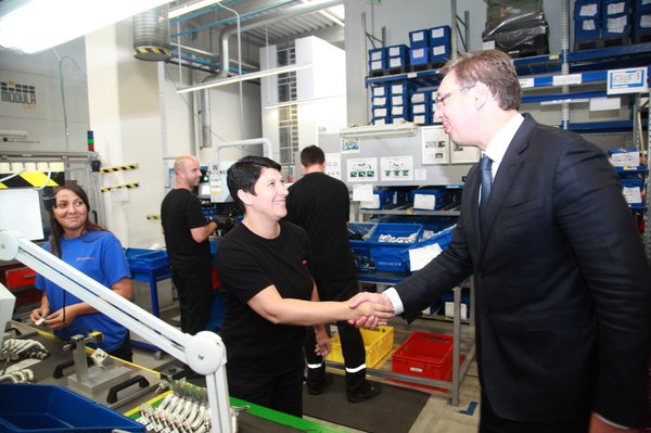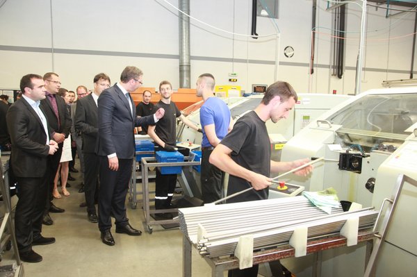 Вучић је подвукао да је посебно значајно то што у поменутој фабрици 14 ученика пролази дуални тренинг, уз напомену да су се позиву на такву врсту ангажмана засад одазвале само аустријске, немачке и швајцарске компаније.
