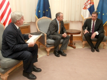 Амерички амбасадор и амбасадор ЕУ заједнички су подвукли своју снажну подршку економским и политичким реформама Владе Србије, као и премијеровом циљу да припреми Србију за придруживање Европској унији 2020. године.