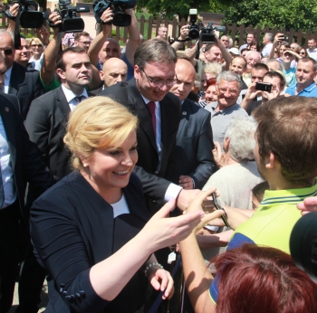 Председник Владе Републике Србије Александар Вучић и председник Републике Хрватске Колинда Грабар-Китаровић сусрели су се данас на мосту на Дунаву, у међуграничној зони код Ердута, на граничном прелазу Богојево–Ердут, након чега су посетили Даљ у Хрватској и разговарали са представницима Срба који живе у тој земљи.