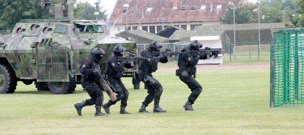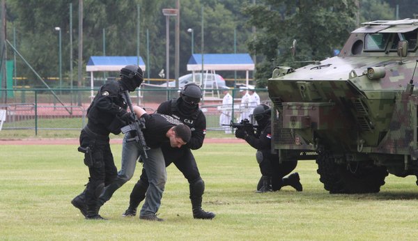 Припадници Специјалне антитерористичке јединице (САЈ), уз употребу оклопних борбених возила, приказали су на који начин би дејствовали у случају напада терориста на путнички аутобус и отмице талаца.