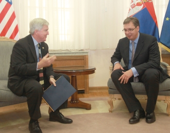 Амерички амбасадор је такође истакао значај постојеће сарадње двеју земаља и програма америчке подршке српским институцијама у увођењу виших стандарда у тој области, као и у борби против корупције.
