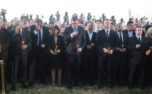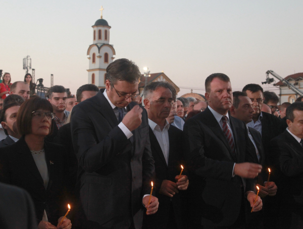 Вучић је у Бусијама, насељу у општини Земун, у којем већину становништва чине крајишки Срби избегли пред хрватском војском у акцији "Олуја" 5. августа 1995. године, као и Срби са подручја БиХ, навео да је данас тежак и тужан дан за Србију и Србе.