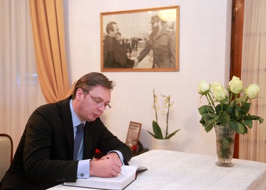 Председник Владе Републике Србије Александар Вучић уписао се данас у књигу жалости у Амбасади Кубе у Београду, поводом смрти лидера кубанске револуције и бившег председника Републике Кубе Фидела Кастра.