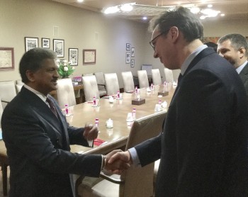 Он је позвао председника "Махиндра групе" да посети Србију и размотри могућности које Србија пружа страним инвеститорима, као и тржишта земаља са којима има уговоре о слободној трговини.