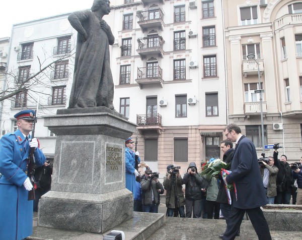 Председник Владе Републике Србије Александар Вучић и председник Владе Грчке Алексис Ципрас положили су данас венце и цвеће на споменик Риги од Фере у Београду.