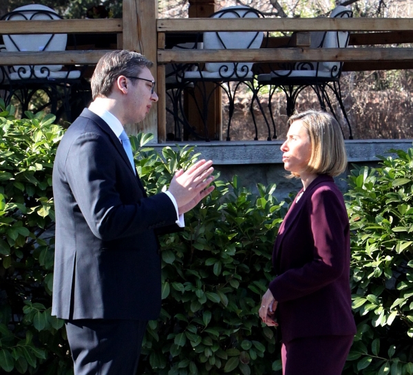 Вучић је изразио захвалност Могерини на посети Србији, истакавши да је добродошла у нашу земљу, али и жаљење због инцидента у парламенту током њеног обраћања посланицима.